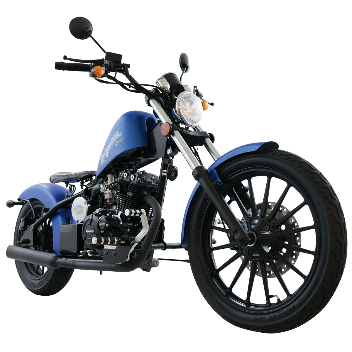 Disponible en colores Azul, Negro y Verde mate metálico, esta motocicleta evoca lo mejor del estilo vintage y el minimalismo del movimiento Bobber. El diseño del tanque, la silueta baja, el asiento tipo solo seat y su postura de manejo relajada pero dominante, son parte de su esencia indomable.