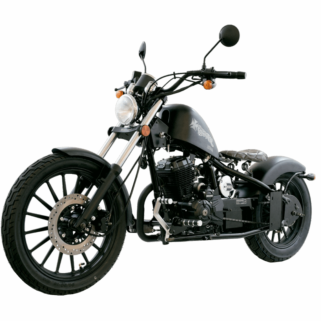 La Chopper 250cc es la motocicleta que rompe las reglas del camino. De una sola plaza y con diseño tipo Bobber, esta moto tiene el alma de un rebelde y el corazón de un viajero. Su diseño es icónico, con un estilo rudo, sobrio y agresivo, pensado para quienes buscan originalidad, potencia y personalidad.