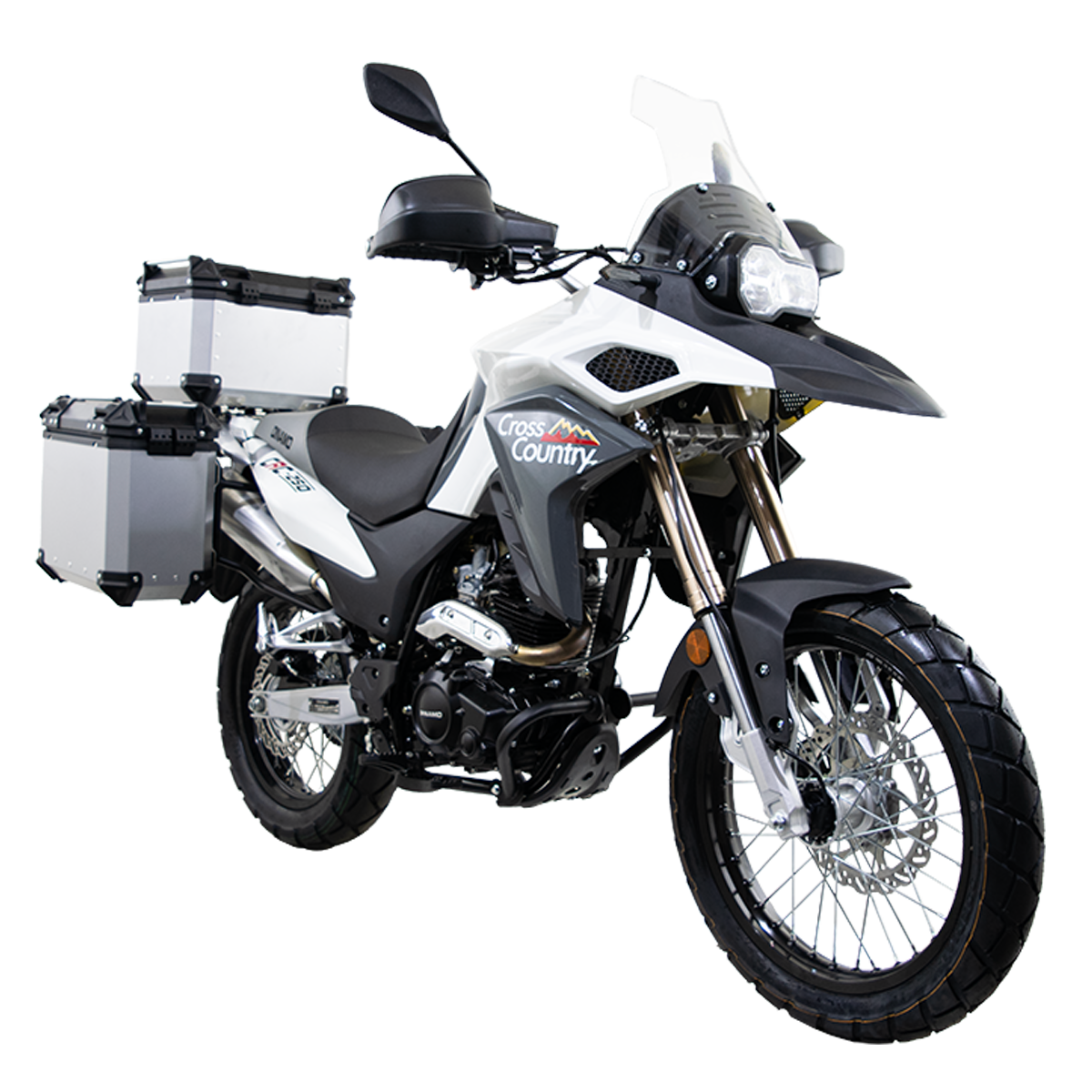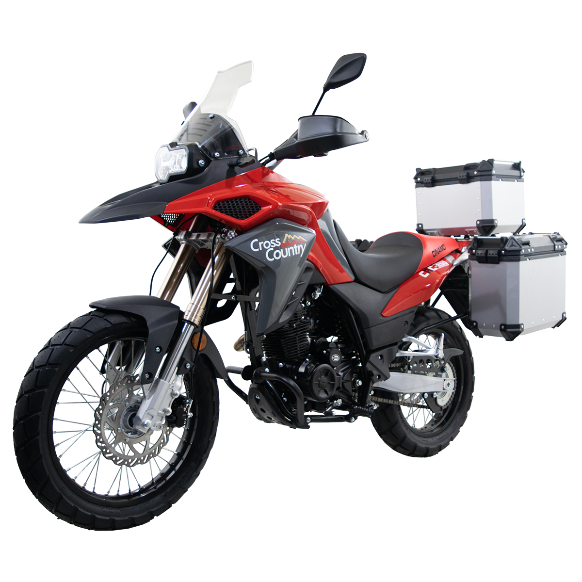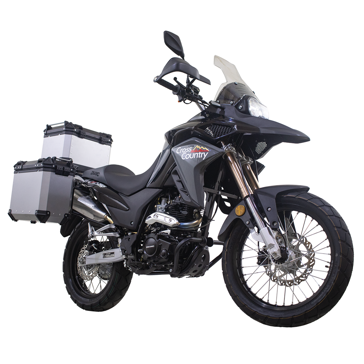 La DINAMO CrossCountry ADV 250 es una motocicleta doble propósito de estilo adventure, diseñada para ofrecer la máxima versatilidad y confort. Con un motor de 250cc, suspensiones de alto rendimiento y accesorios integrados para viajes largos, es la compañera perfecta tanto para la ciudad como para la carretera y los terrenos más desafiantes.